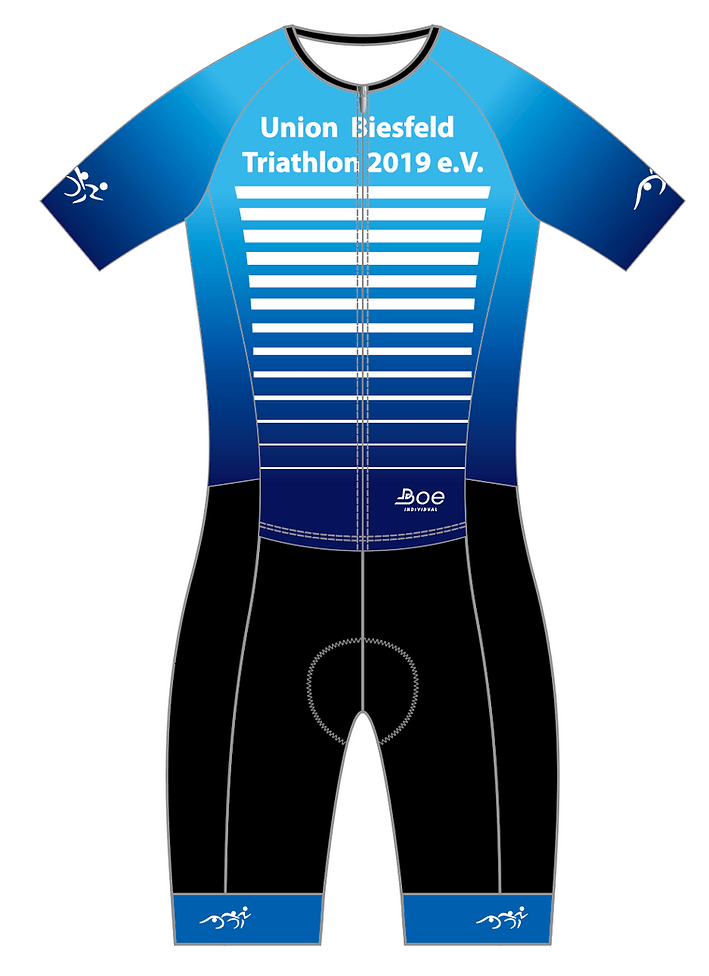 Angeboten werden aktuell unterschiedliche Radtrikots und -hosen, Einteiler, Laufoberteile und Windweste im Union Biesfeld Design angeboten.